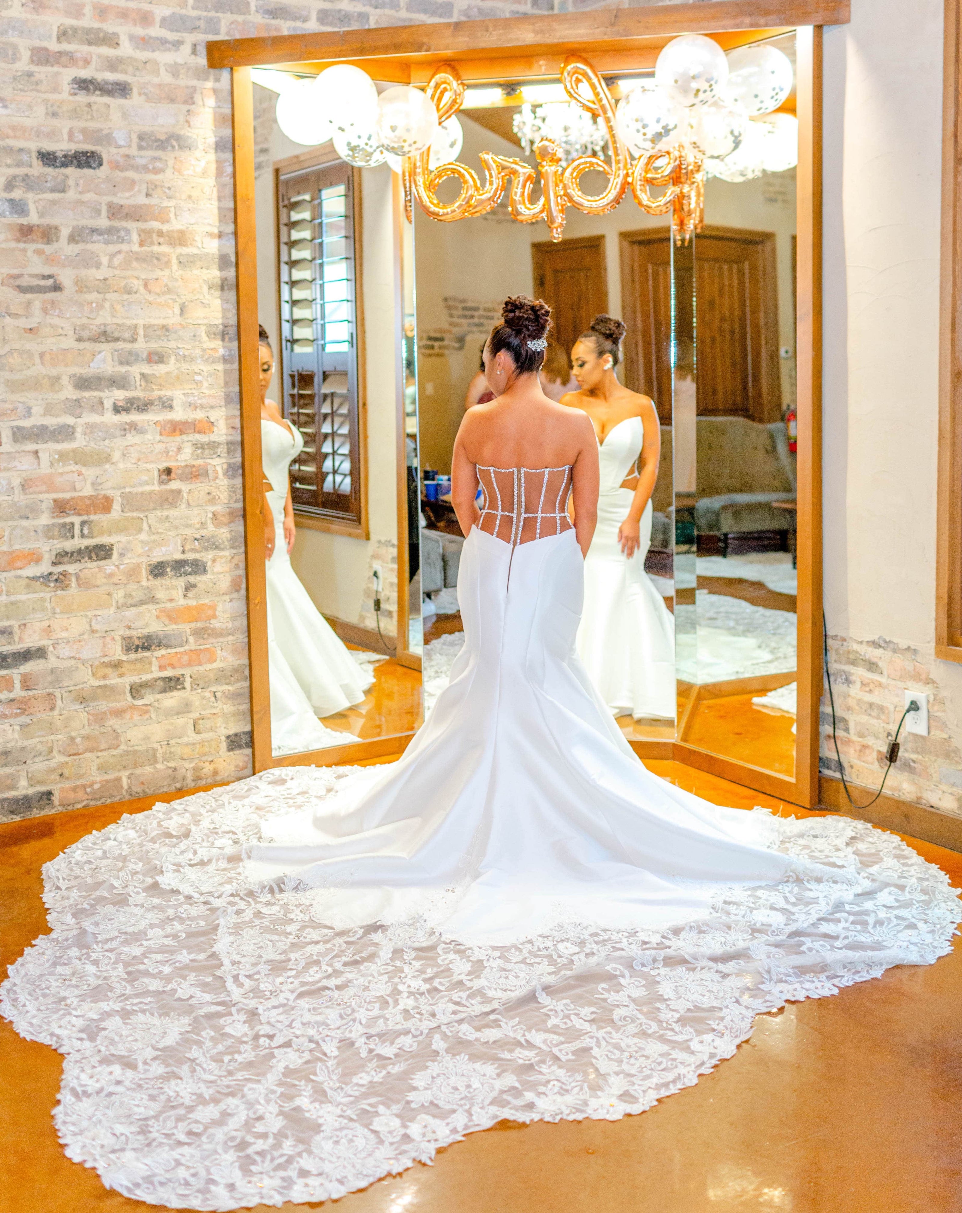 In our experience, we’ve found that our brides need very minimal alterations, compared to the multiple fittings and alterations that off the rack gowns using standard sizing at boutiques require. We create our dresses to be easily altered by different seamstresses and tailors worldwide, saving our brides the extra expenses of traveling thousands of miles just to get their dream dress. We understand as a bride you want to know all of your options, so if you are interested in having an in person sitting, please ask us for more information and we will be happy to assist!