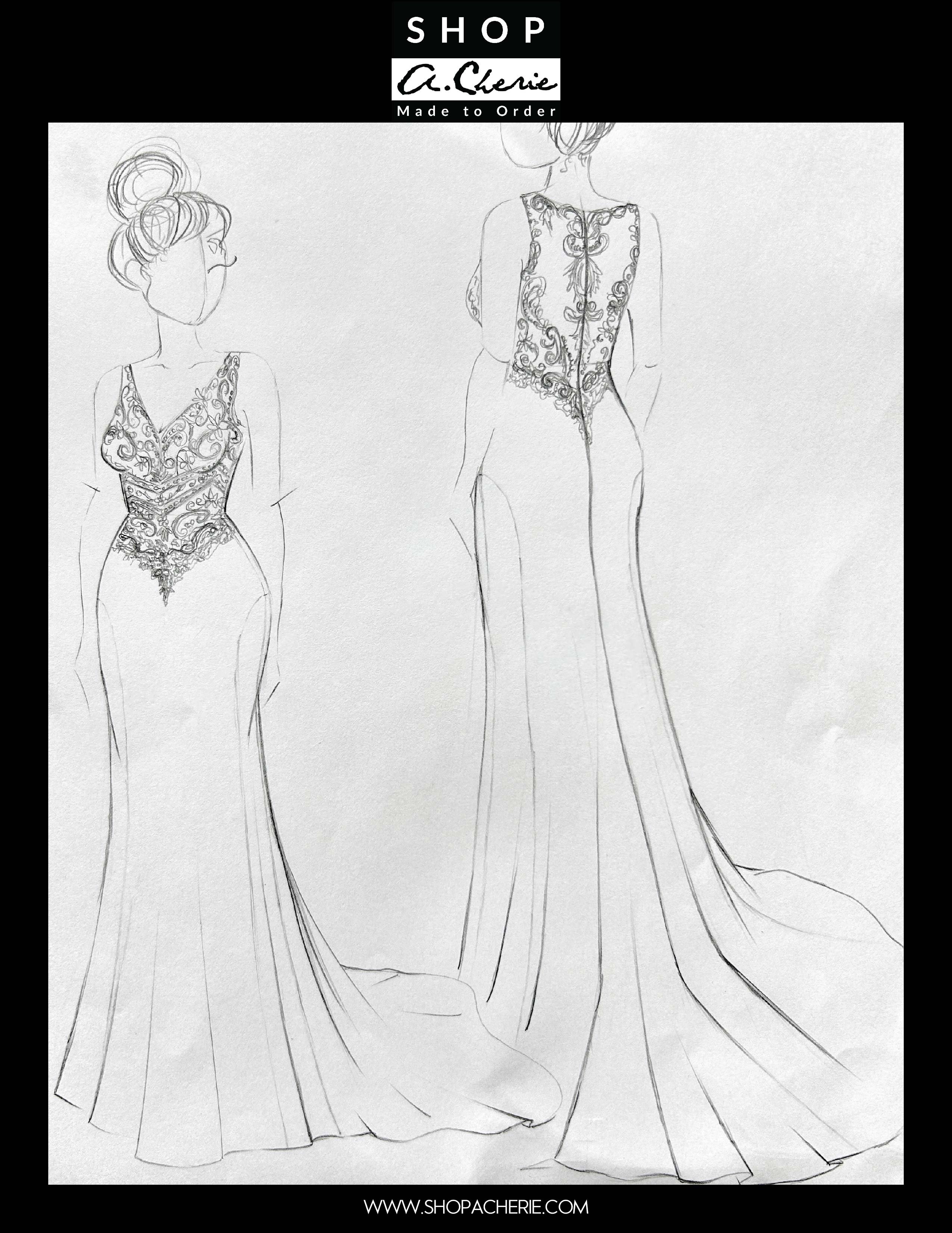Pencil sketches are recommended for our brides who are wanting to combine 2 dress designs or are just adding minor modifications to their dream dress our made-to-order wedding dress collections.