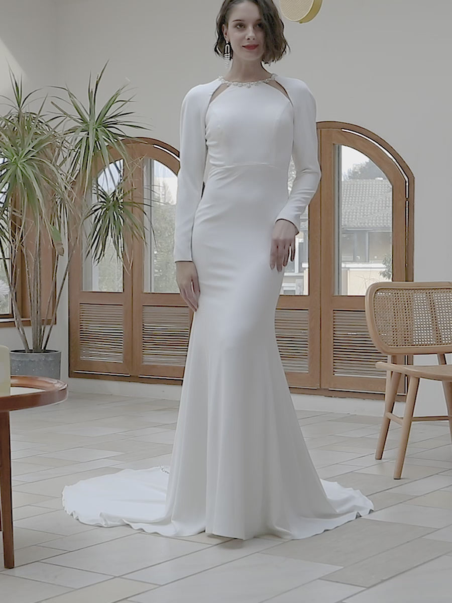 Cut-Out Crepe Fit & Flare Wedding Dress Brooklynn with Beaded Detailing