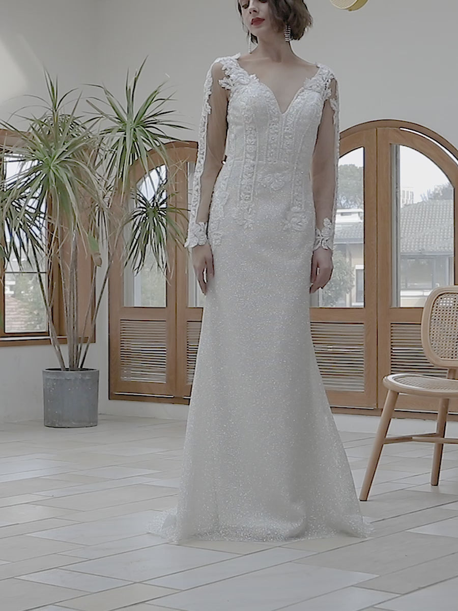 Floral Lace & Glitter Sheath Wedding Dress Penelope