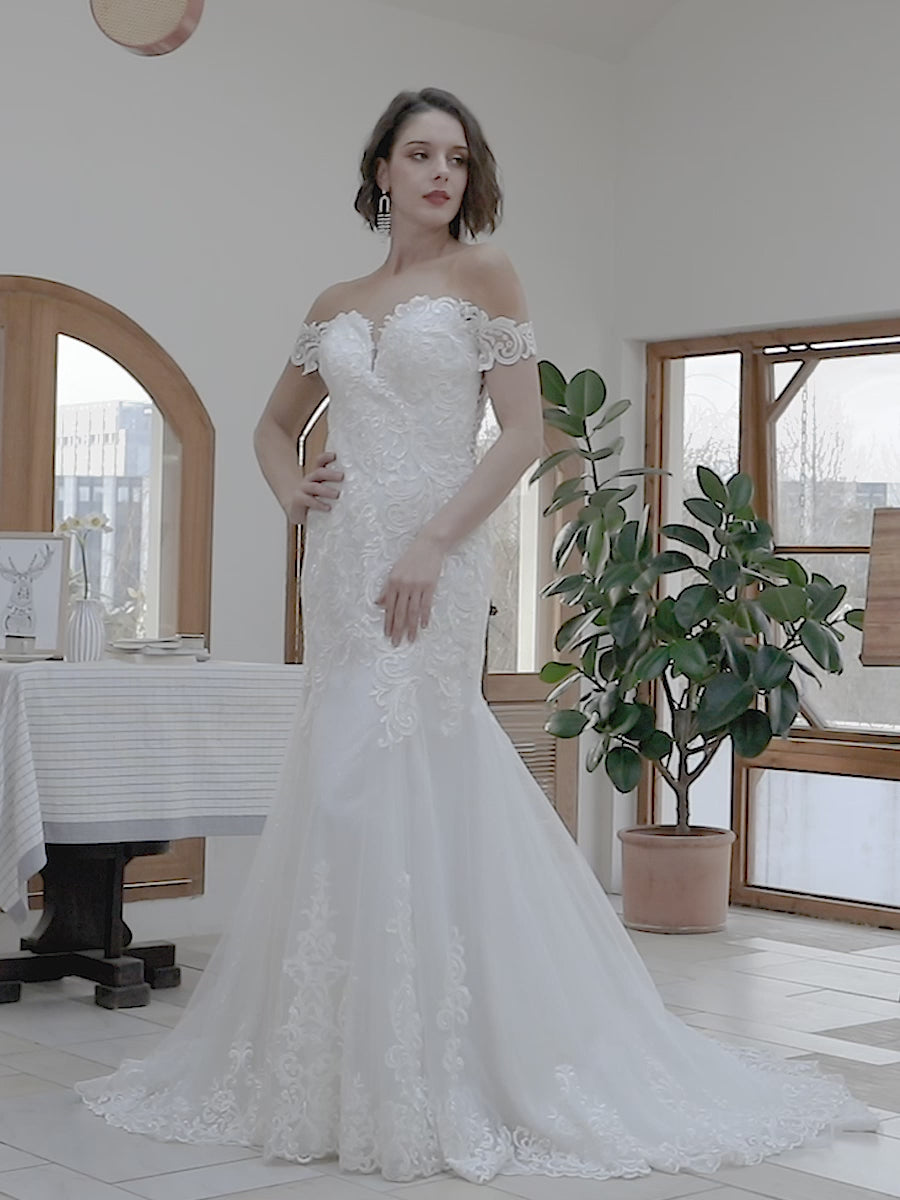 Off Shoulder Sequin Lace Glitter Tulle Fit & Flare Wedding Dress | Blair