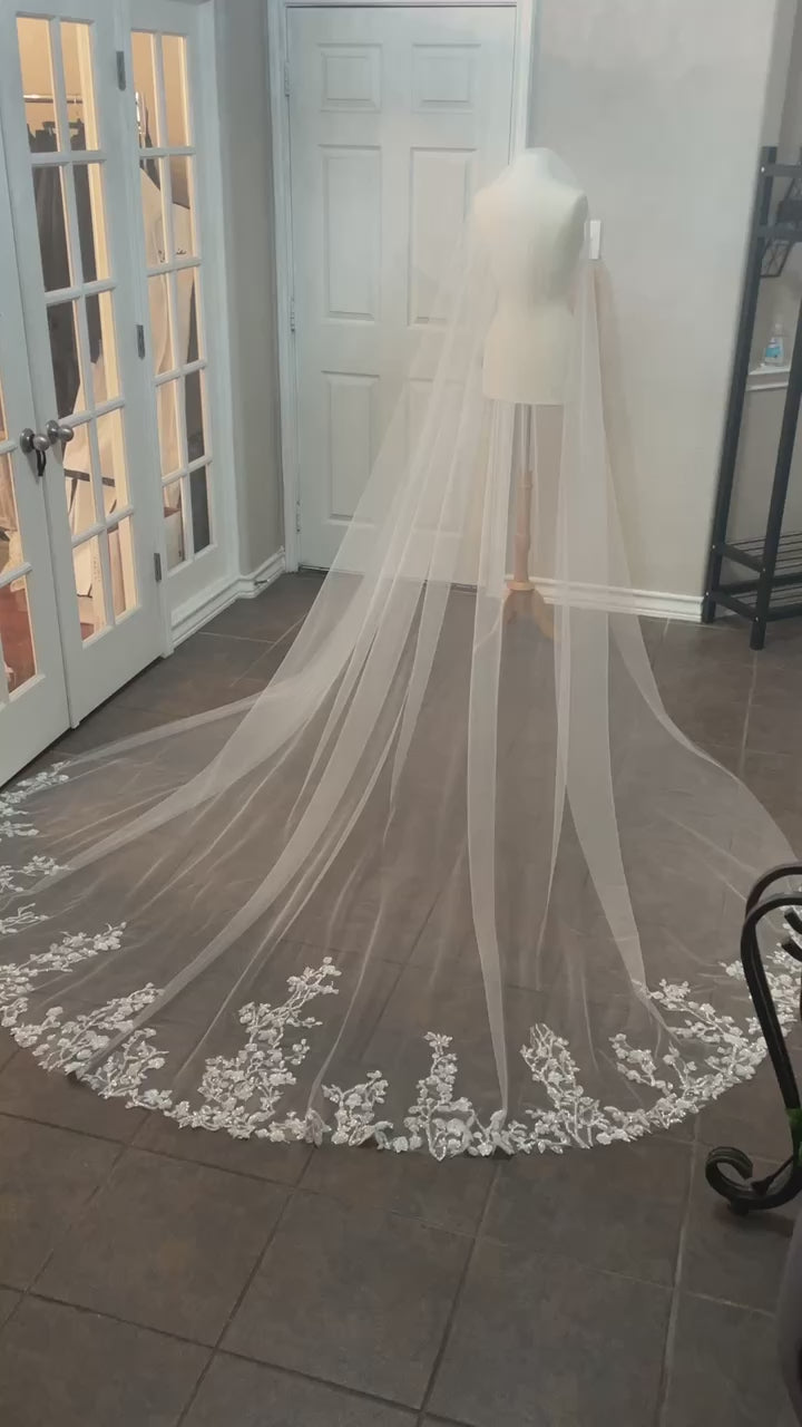 Style CV37 Sequin Floral Lace Cathedral Veil